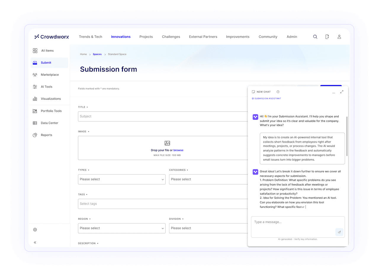 Wenn Ideen in E-Mails und Excel-Tabellen verloren gehen, stocken kontinuierliche Verbesserungsprozesse. Crowdworx vereint alle Ideen, Initiativen und Ergebnisse auf einer Plattform und bietet Unternehmen so die nötige Transparenz, Schnelligkeit und Motivation, um Ideen in messbare Ergebnisse umzusetzen.