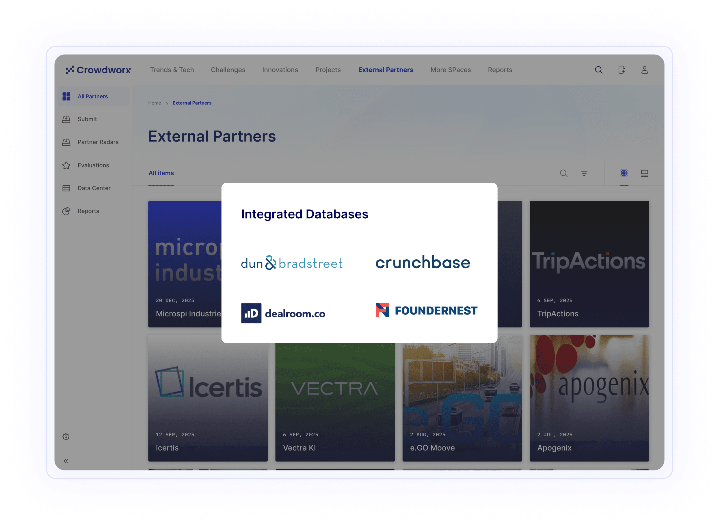 Betreiben Sie Start-up-Scouting, Technologie-Discovery und Partnermanagement mit einer integrierten End-to-End-Plattform.
