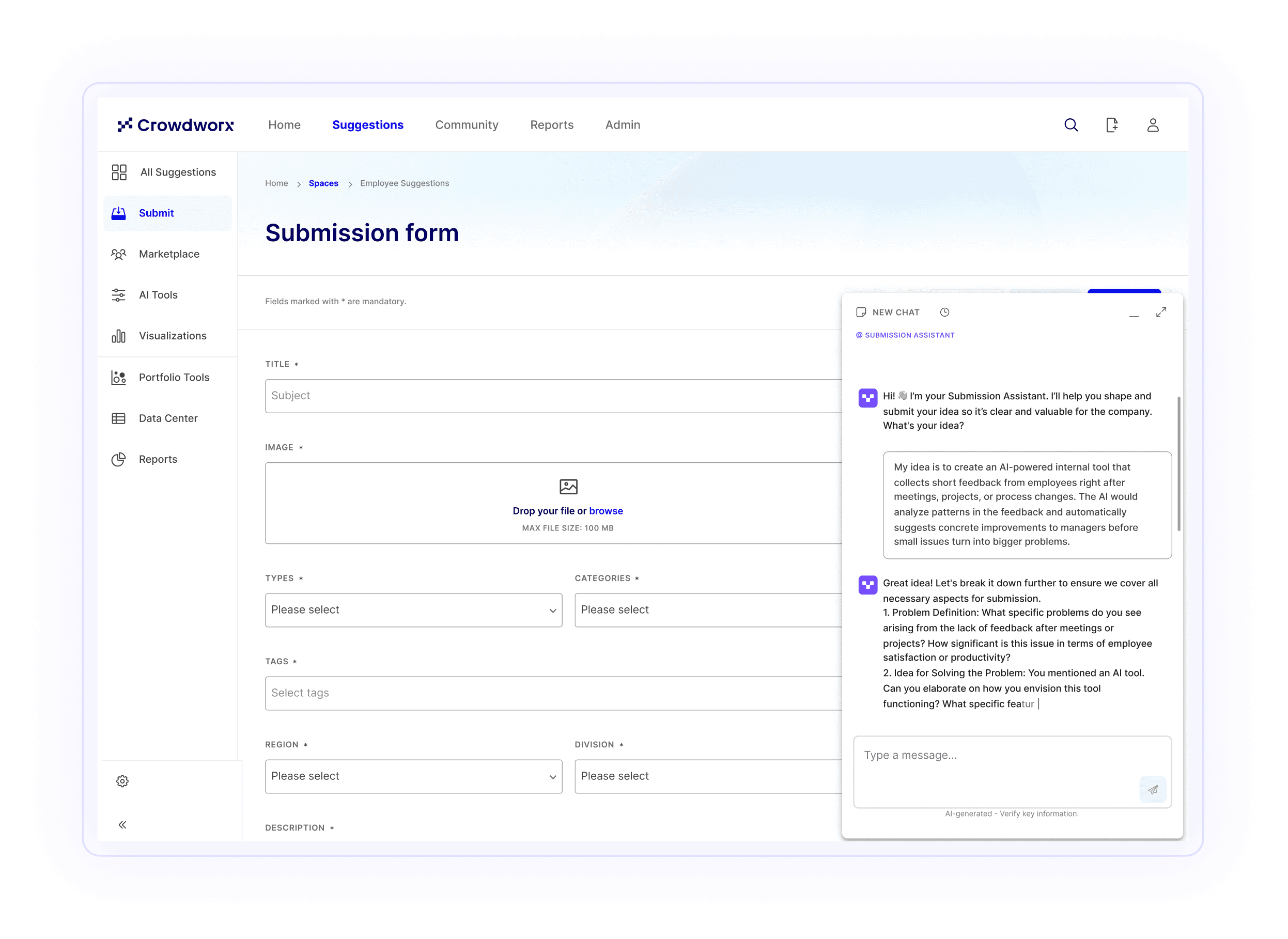 “With Crowdworx, we generated over 2,000 ideas in the first 6 months alone and achieved an implementation rate of 83%!”